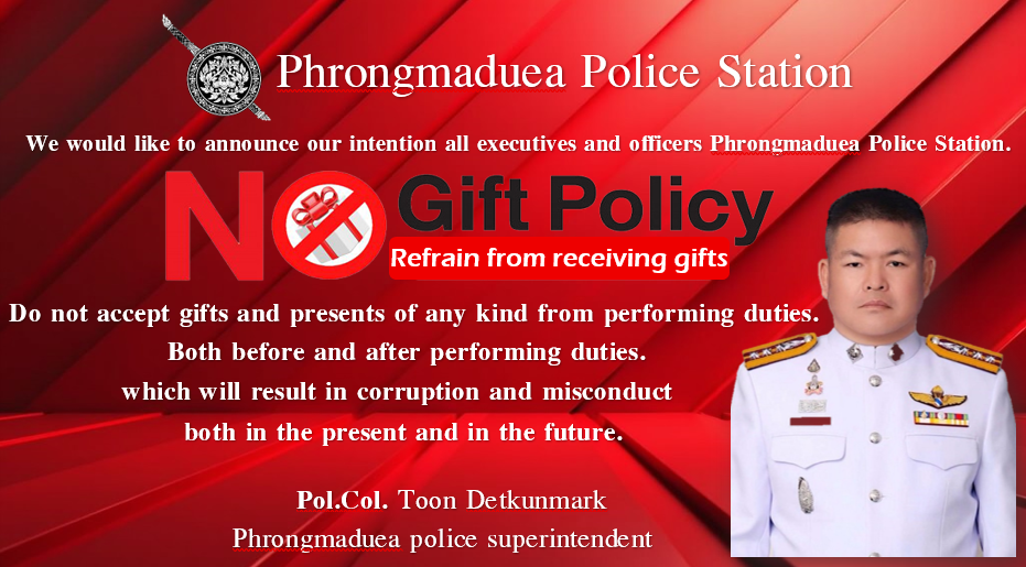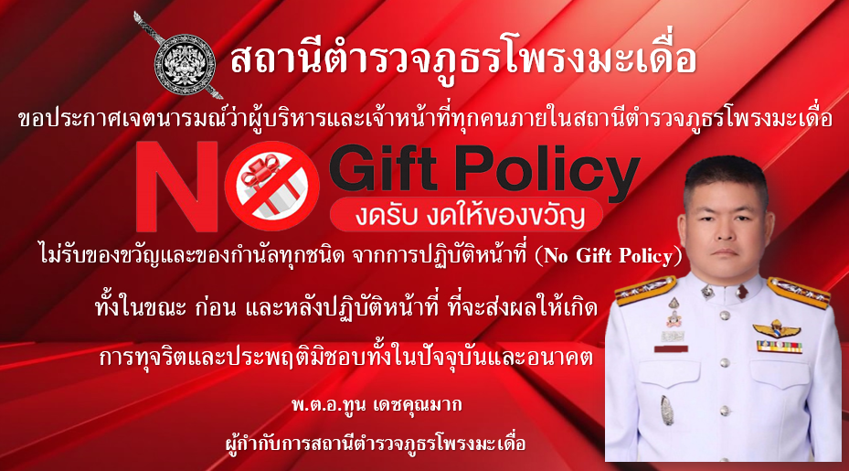 2. เพื่อส่งเสริมให้ชำาราชการตำรวจในสังกัดสถานีตำรวจภูธรโพรงมะเดื่อ มีจิตสำนึกในการปฏิเสธการรับของขวัญและของกำนัลทุกชนิตจากการปฏิบัติหน้าที่