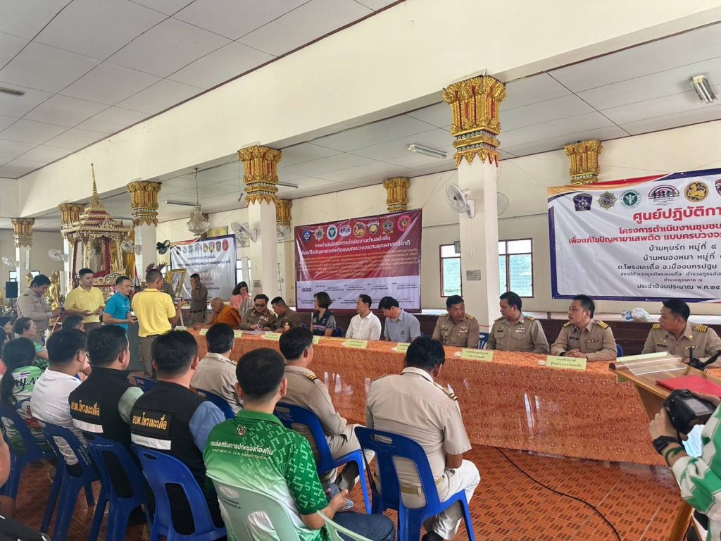 เรียน ผู้บังคับบัญชา วันที่ 12 มีนาคม 2568เวลา 13.00 น.– ว่าที่ พ.ต.อ.เลอศักดิ์ ตุมรสุนทรผกก.สภ.โพรงมะเดื่อ– พ.ต.ท.กิตติพันธ์ กาญจนนฤนาท รอง ผกก.ป.สภ.โพรงมะเดื่อ– พ.ต.ท.อนุสรณ์ สิงหกมลสวป.สภ.โพรงมะเดื่อพร้อมชุดปฏิบัติการชุมชนบำบัดอย่างยั่งยืน สภ.โพรงมะเดื่อร่วมพิธีเปิดโครงการชุมชนบำบัดอย่างยั่งยืนในพื้นที่แพร่ระบาดยาเสพติด ตามนโยบายเร่งด่วนของรัฐบาล โดยมี– ดร.อภิชา ไชยพรชลิดานายอำเภอเมืองนครปฐม– นางพิมพา บุญวรรโณพัฒนาการอำเภอเมืองนครปฐม– นายฉัตรชัย ใจเย็น ครู กศน.ตำบลโพรงมะเดื่อ– นายนพดล ทิพย์พญาชัย ผอ.รพ.สต.บ้านหุบรัก– นายนันทพันธ์ ปฐมเจริญสุขชัย นายก อบต.โพรงมะเดื่อ– นายสิทธิชัย ปฐมเจริญสุขชัย กำนัน ต.โพรงมะเดื่อ– พระครูสุธรรมะโสภิต เจ้าอาวาสวัดอินทราราม – นายเจดีย์ ดีสวาสดิ์ ผู้ใหญ่บ้าน ม.4 ต.โพรงมะเดื่อ – นายมานพ คำผาสุข ผู้ใหญ่บ้าน ม.11 ต.โพรงมะเดื่อ พร้อมด้วยแกนนำชุมชนและประชาชนในหมู่บ้านเป้าหมาย ณ ศูนย์ปฎิบัติการโครงการชุมชนบำบัดอย่างยั่งยืน วัดอินทราราม ต.โพรงมะเดื่อ อ.เมือง จ.นครปฐม